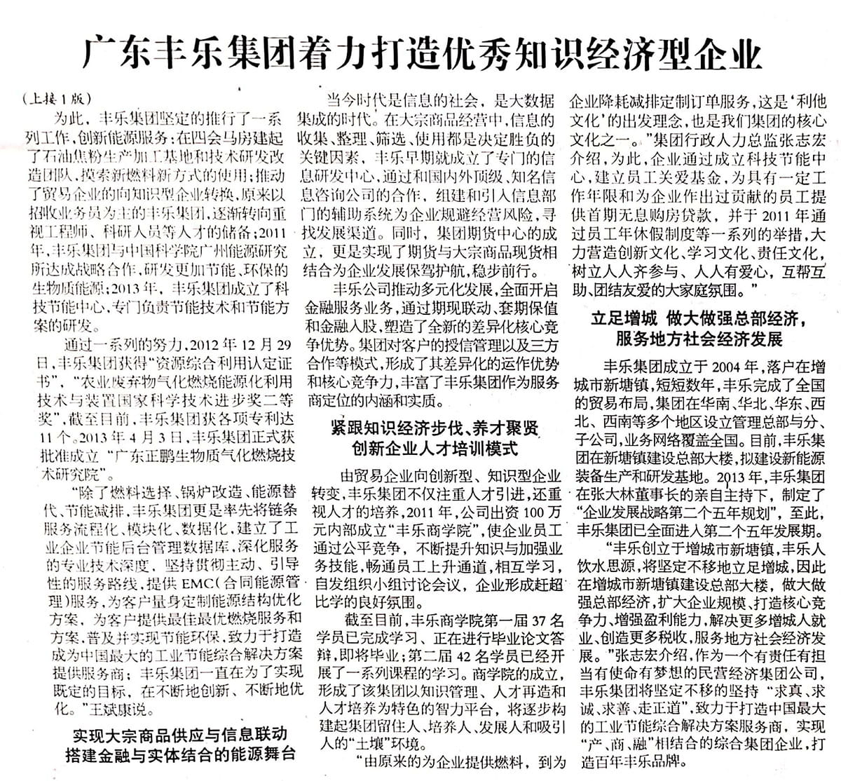【增城日报】广东丰乐集团着力打造优秀知识经济型企业