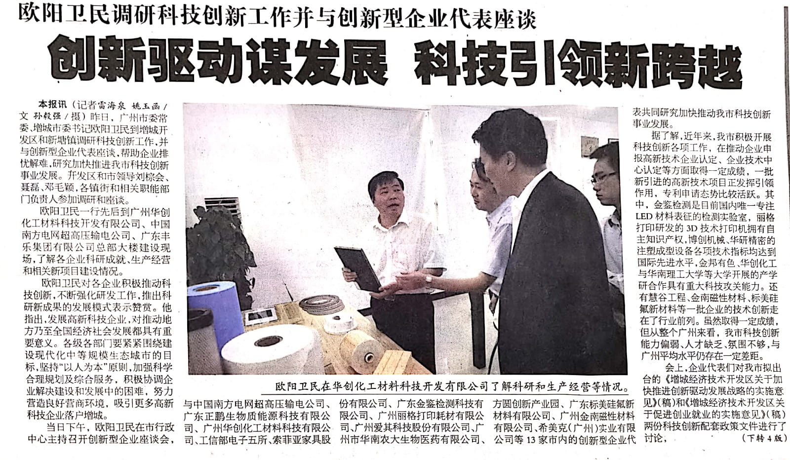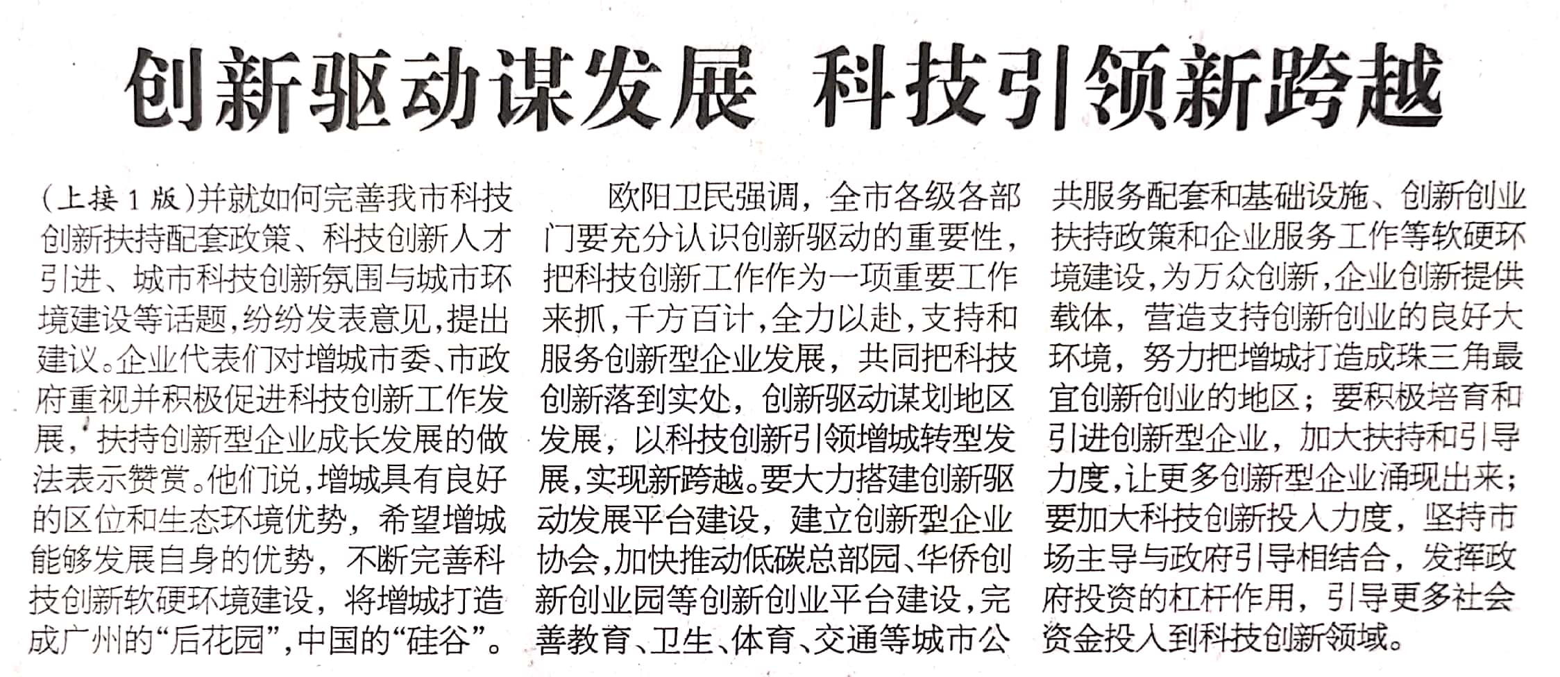 【增城日报】创新驱动谋发展 科技引领新跨越