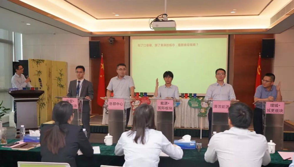 赛中,五支参赛队伍的3名参赛选手和1名监督员依次进行了必答题、抢答题和模拟投放共三个环节的比赛,选手们认真作答应战,台下啦啦队员为各自战队加油鼓劲。经过激烈的角逐,最终能源+国际板块获得一等奖,总部中心、增城+城市更新板块获得二等奖,清洁能源板块、资产管理+物业公司获得三等奖。