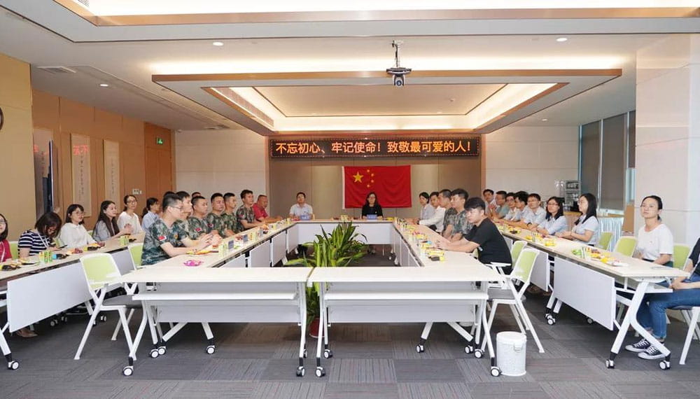 茶话会上,集团副总裁李利玲表达了对中国人民解放军及在座退伍军人的崇高敬意和祝福。李总表示,军人的使命是保家卫国,舍小家为大家,而丰乐人的使命是奉献利他,让大家实现更美好的生活。所有丰乐人都要学习部队铁一样的纪律,学习军人听党指挥、能打胜仗、作风优良的精神。希望全体丰乐人不忘初心、牢记使命、团结一致、荣辱与共、不畏艰辛、智胜未来!