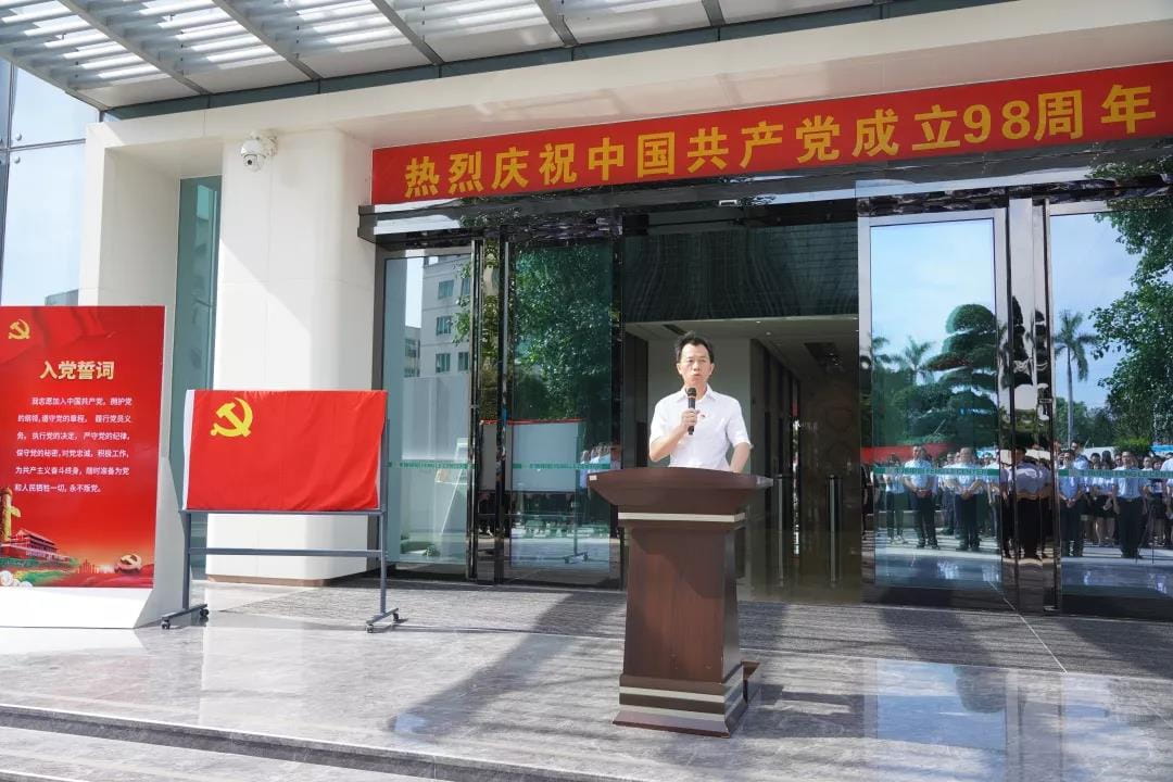 张大林书记在国旗下给全体党员、干部职工上了一节深入的党课,带领大家重温党的光辉历程、缅怀党的丰功伟绩。他在讲话中强调,中国共产党从起步时的13人到党员总数突破9000万,从栉风沐雨、薪火相传到如今蓬勃壮大,中国共产党以矢志不渝的奋斗和创造走过了98年,这期间涌现了无数可歌可泣、可亲可敬的先进事迹。我们要在回顾历史中有所体会,通过不断加强学习,以党建引领企建,真正把各项工作职责执行到位。