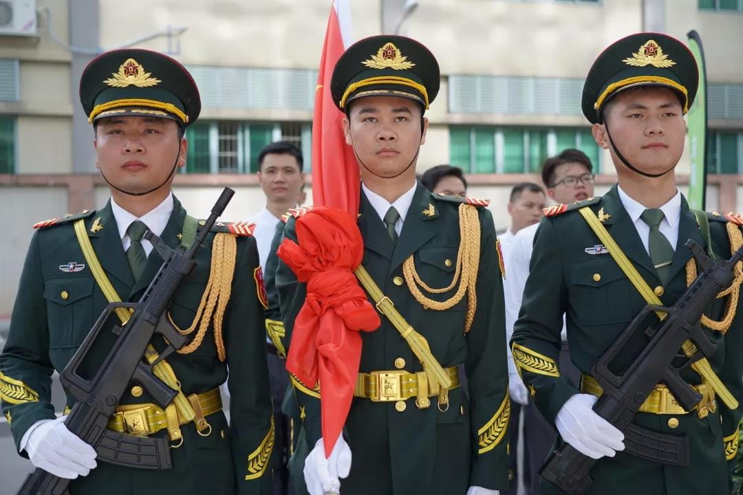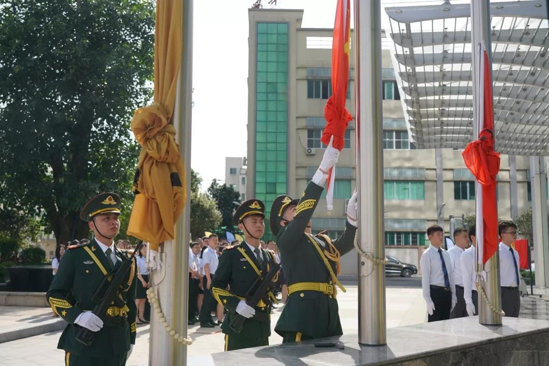上午9:00,集团党委举行了庄严的升国旗仪式。军乐奏响,由职工组成的英姿飒爽的国旗护卫队迈着矫健的步伐,护送红旗走向升旗台。