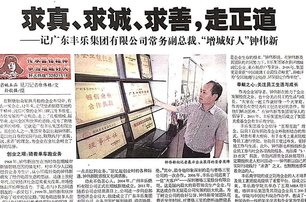【增城日报】“增城好人”获得者——丰乐集团常务副总裁钟伟新